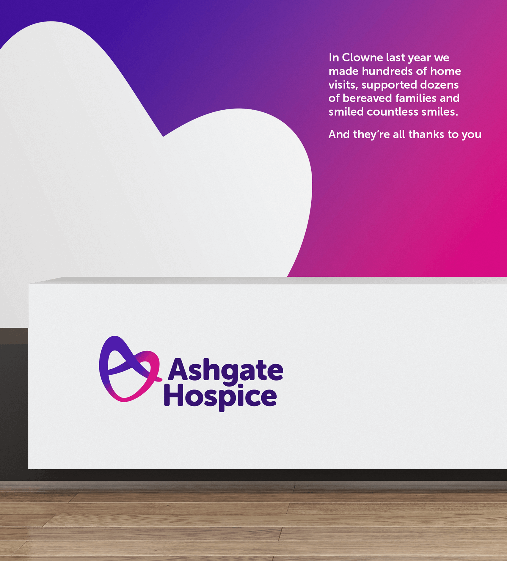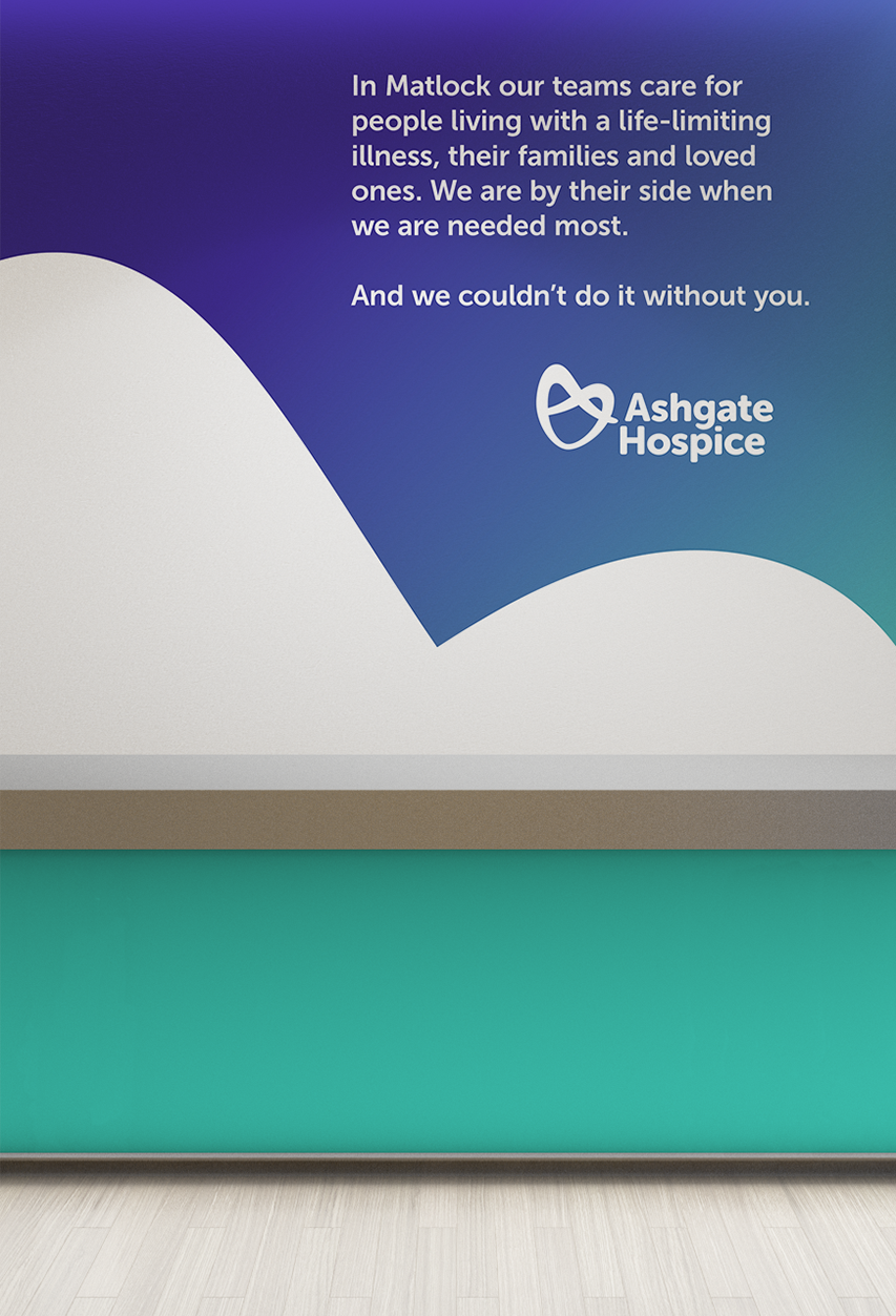 The hospice sector is awash with heart logos. However, the existing Ashgate Hospice heart logo was felt by the whole team to be emblematic of the compassion people encountered and the care given. They didn’t want to lose it, so we created a new logo that kept the heart, but with a distinctively Ashgate Hospice feel.
