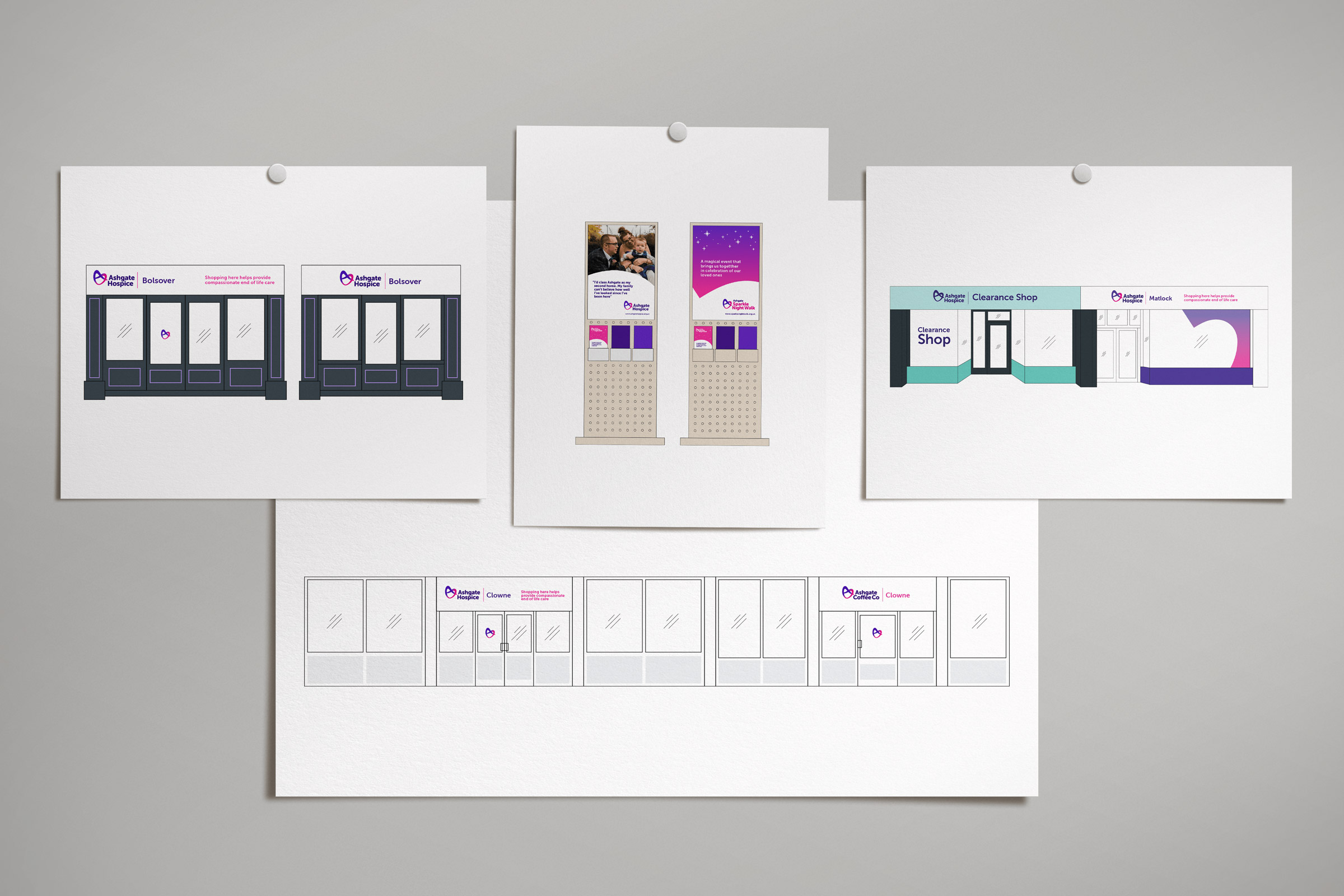 Successive branding projects across Ashgate Hospice’s range of activities had left them with a muddle of logos and messages. Critically, it wasn’t always clear to people donating or shopping that their funds were benefitting the hospice directly.