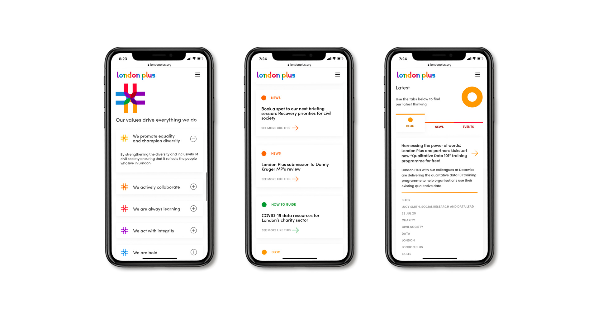 Civil society is London’s beating heart. It changes the lives of hundreds of thousands of people every day. Greater London Volunteering, the charity that supports London’s volunteering organisations, realised a new strategy to offer usable insights from London’s data and help frame London-wide policy to ensure London’s civil society makes even more of a difference. To do this, it changed its name to London Plus and asked Brand Ethos to develop a brand, visual identity and new website that made it stand out and embraced London’s diversity.