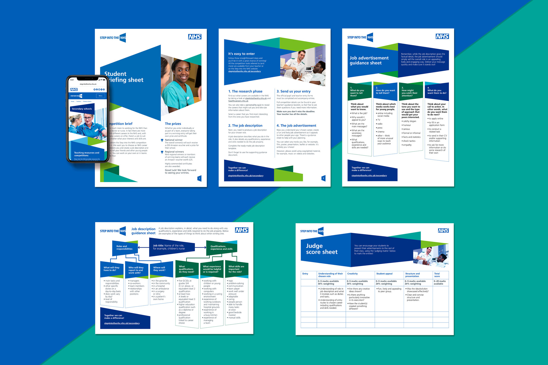 Following our successful rebranding of Health Careers in 2019, Health Education England asked us to deliver a design rethink for the Step into the NHS website and its accompanying competitions and resources for schools from KS2–4.